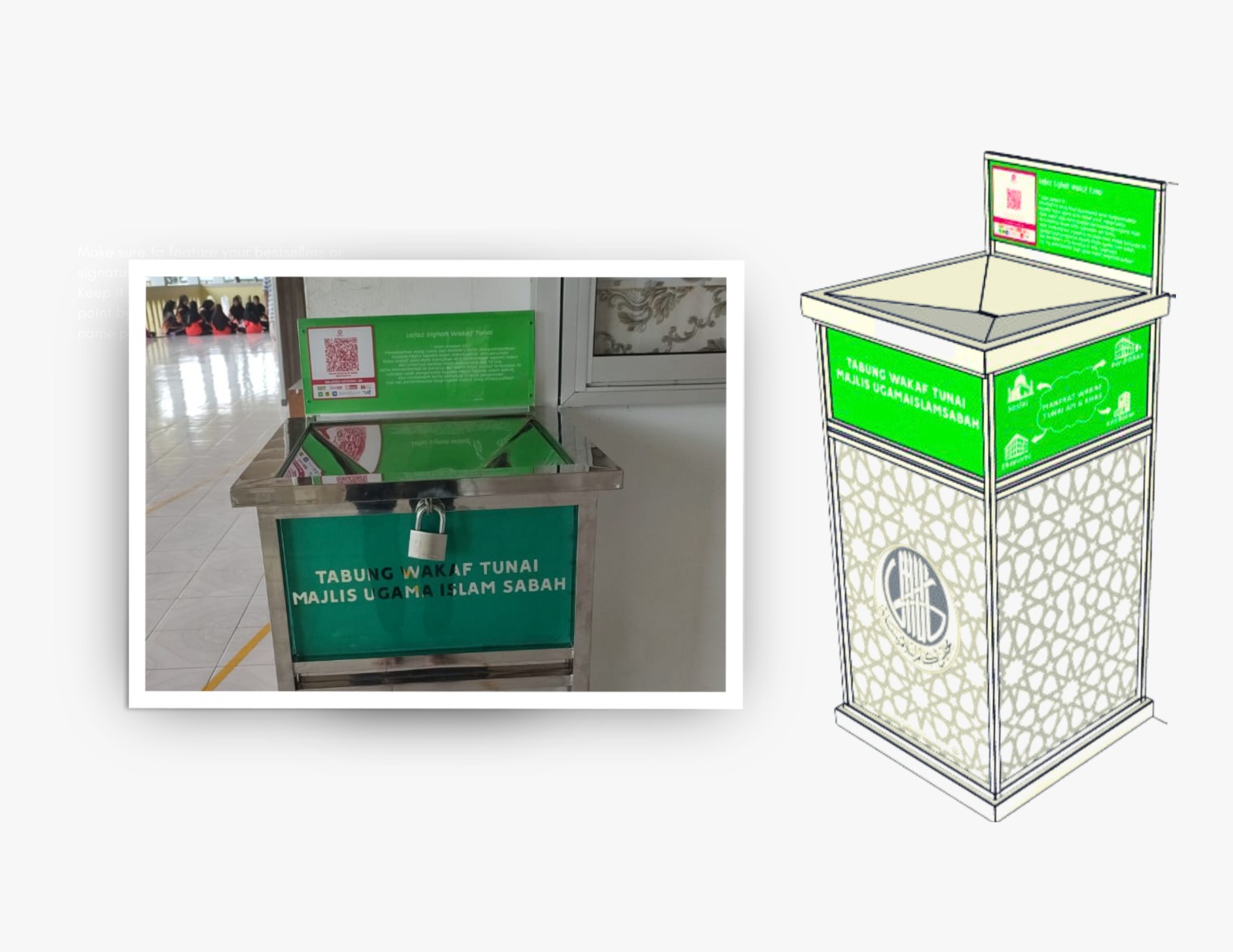 Tabung Wakaf Tunai di letakkan di setiap daerah dalam negeri Sabah dan hanya terletak di masjid-masjid yang terpilih.